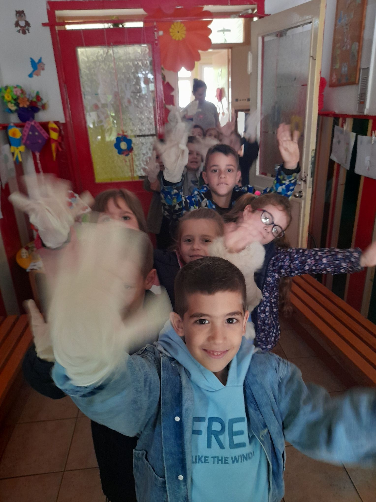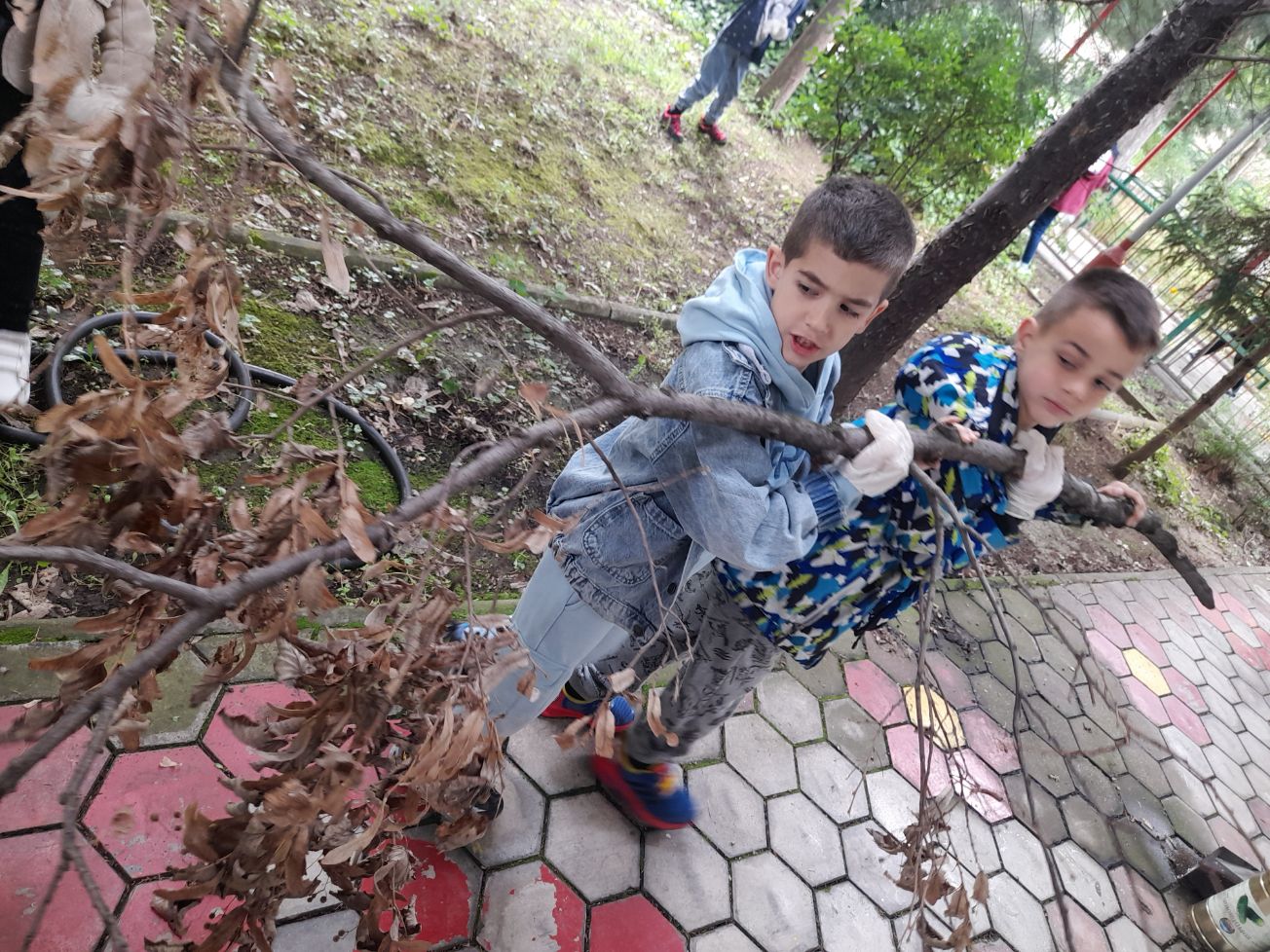 Децата сакаат и умеат да помогнат и да соработуваат со возрасен- учителките во подвижни игри и активности кои се во интерес за сите. Чист двор за прошетка, тераси за игри, вредни, среќни и здрави деца-екологисти🌳🌲