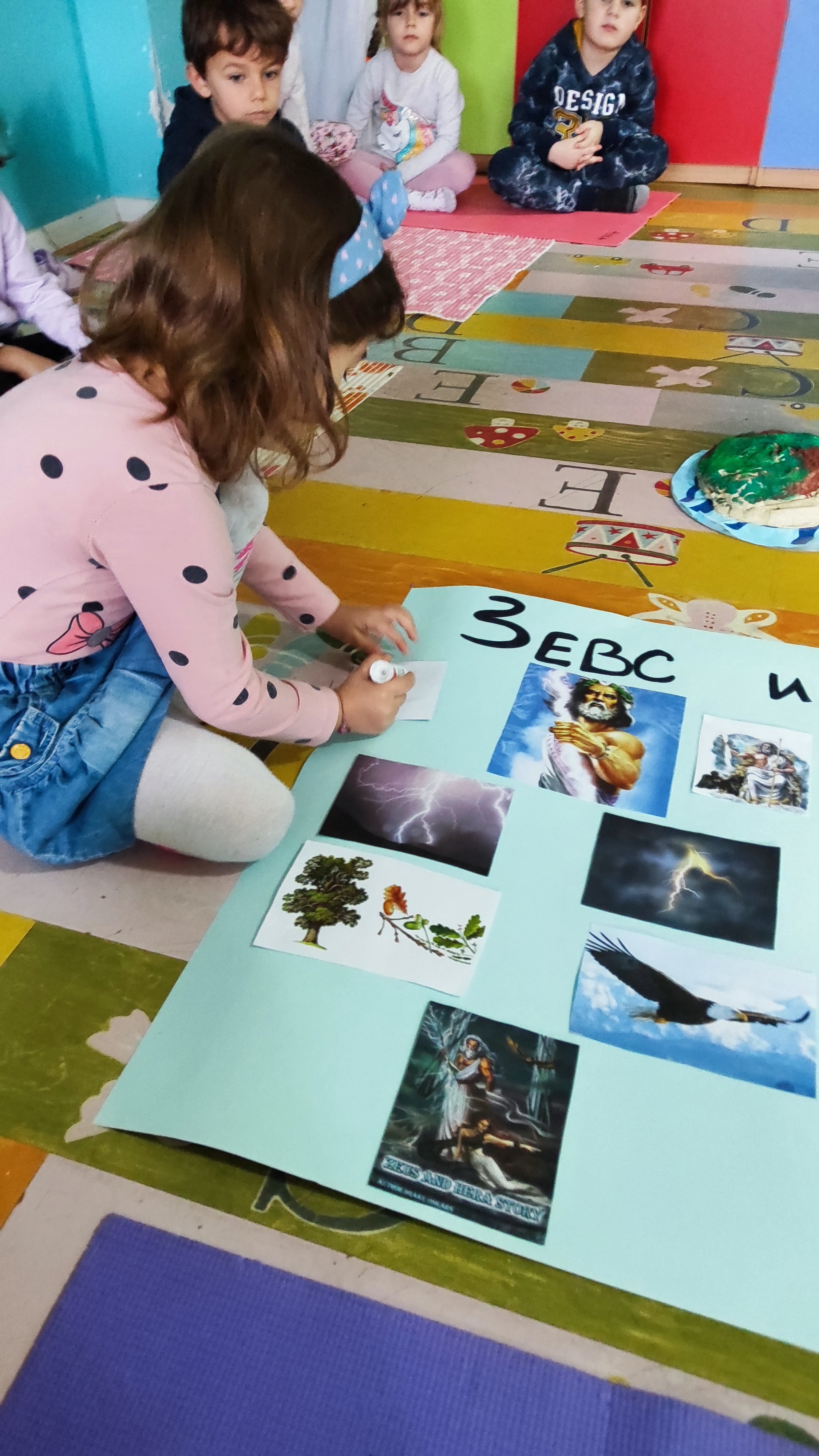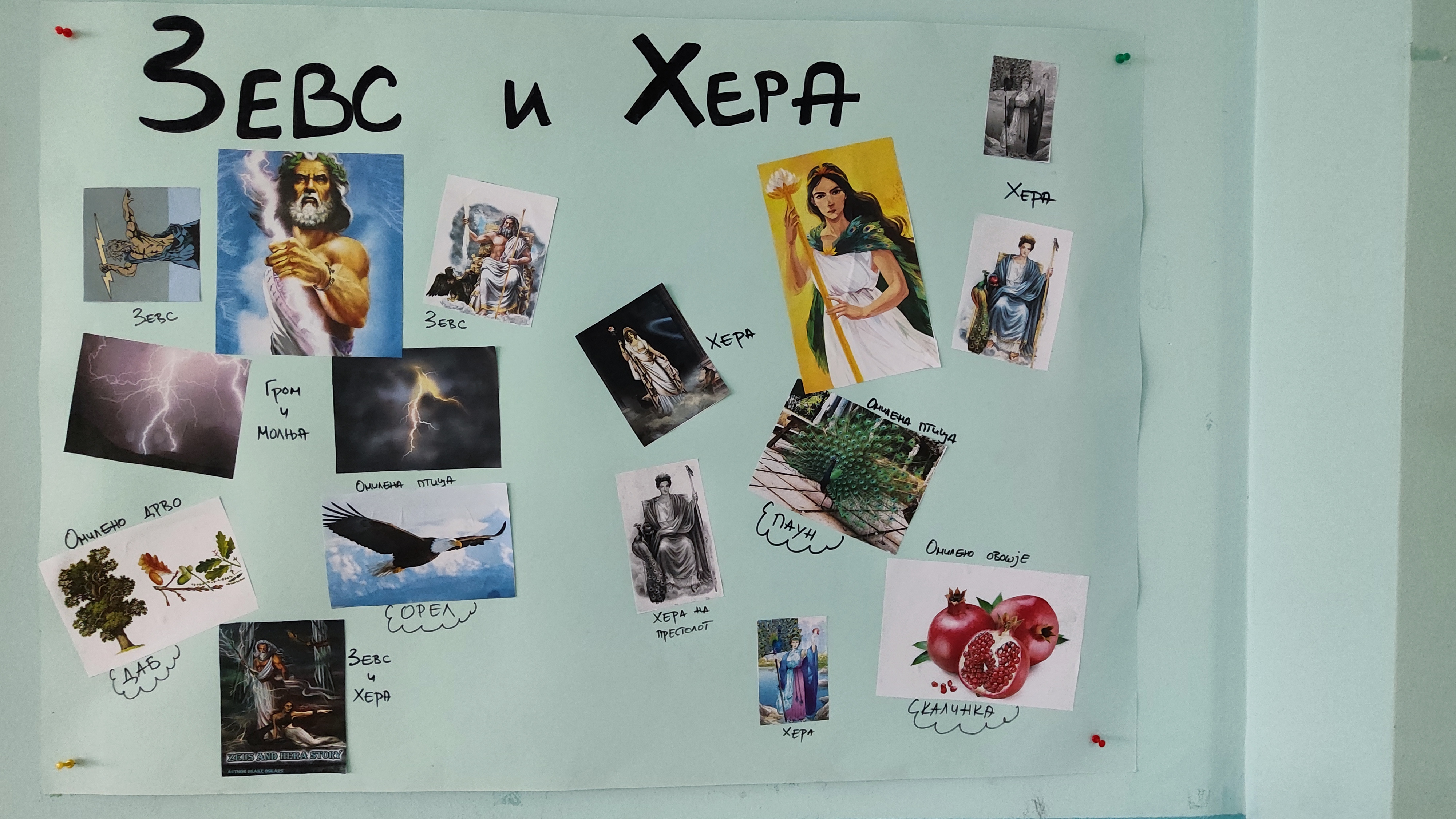 Се изработија одлични приказни за Зевс, Посејдон, Хера, Атена..., се направија креативни изработки, се влегуваше во улога на различен бог, се научија многу нови поими со што децата го збогатија вокабуларот, се изработија и многу други нешта во кои децата уживаа. Научивме дека омилено животно на Зевс е орелот, а омилено растение дабот; на Хера омилено овошје е калинката, а омилено животно паунот итн.Научивме и дека громот о молњата се браќа, од кои едниот се гледа, а не се слуша, а другиот се слуша а не се гледа.
