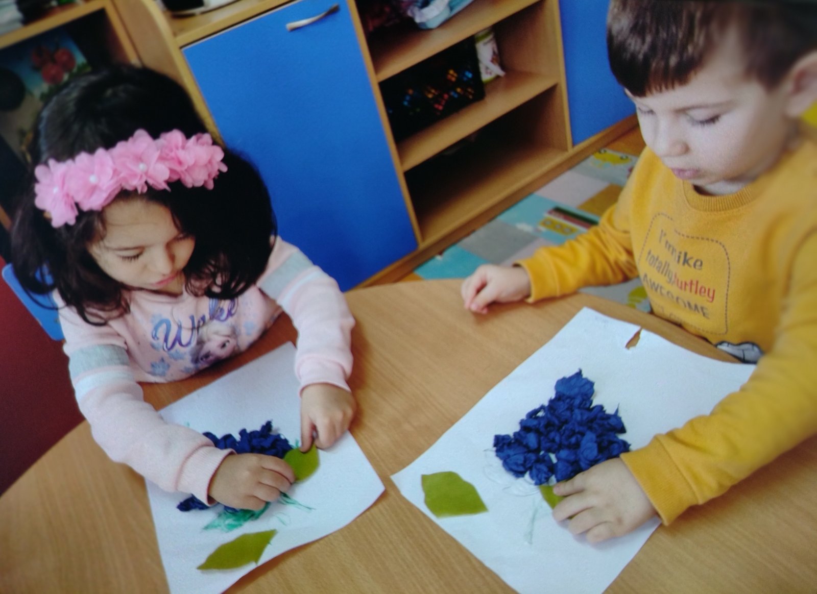 Со оваа активност децата ја развиваа креативноста и способноста да кинат, туткаат и лепат хартија.