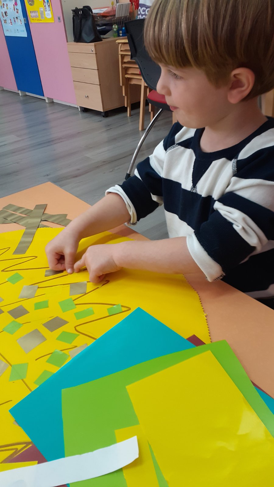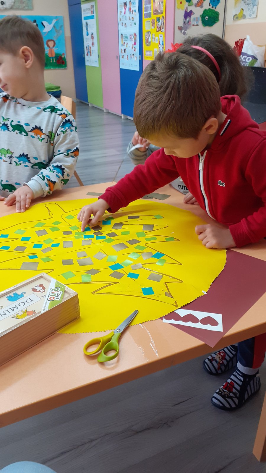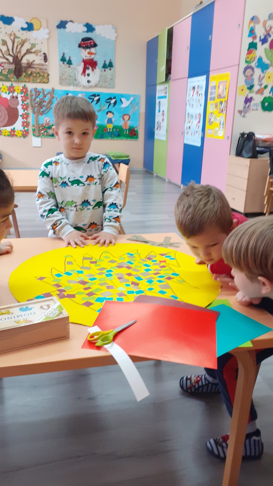 Децата од објект Перуника 2-4 годишна возраст со своите вредни рачиња изработиа голем есенски лист од колаж.
