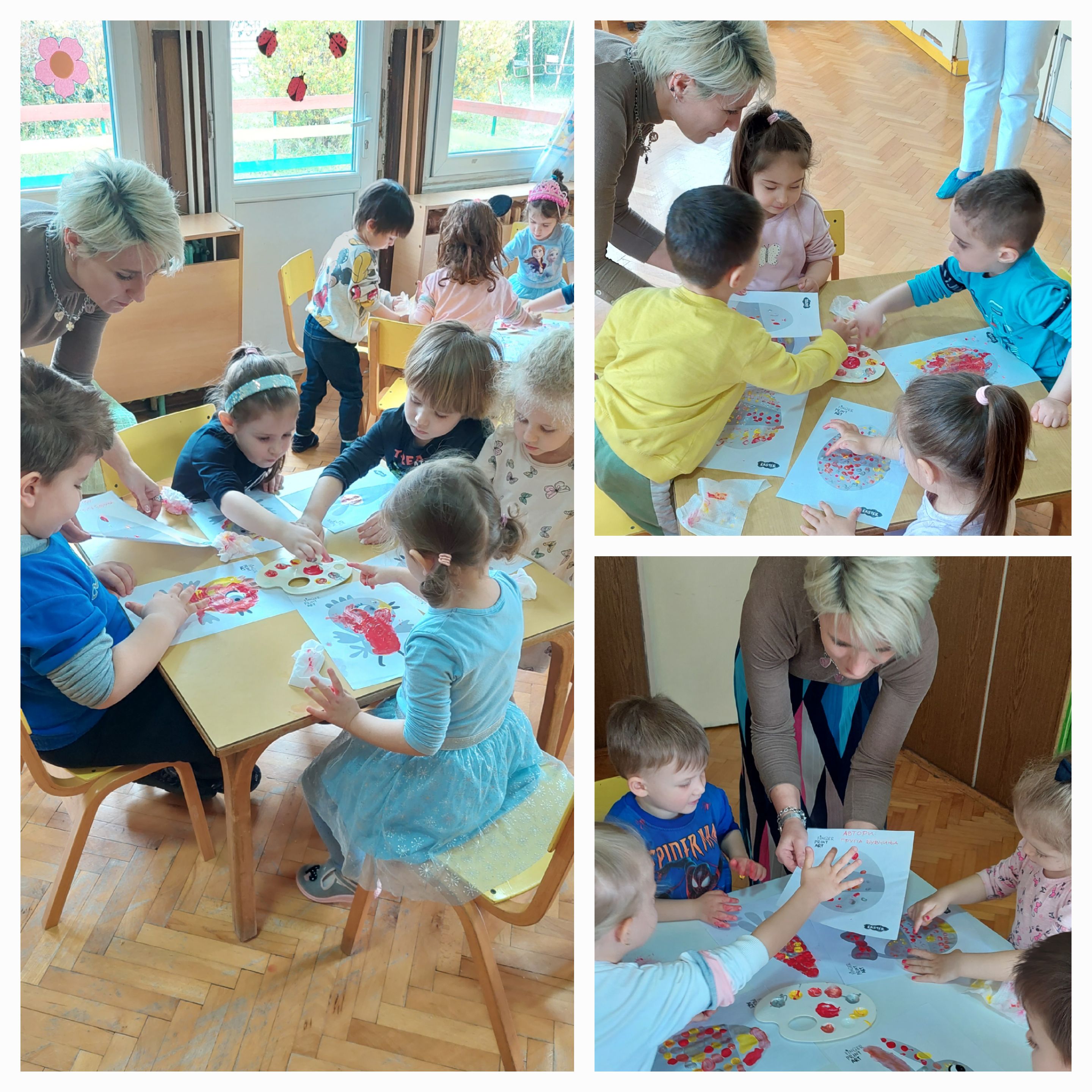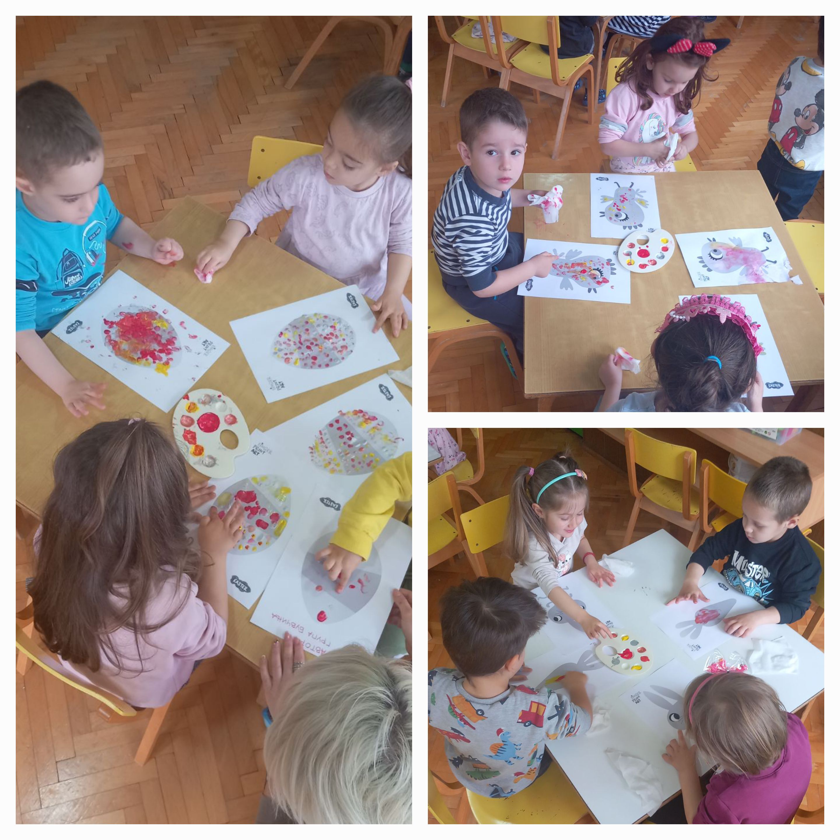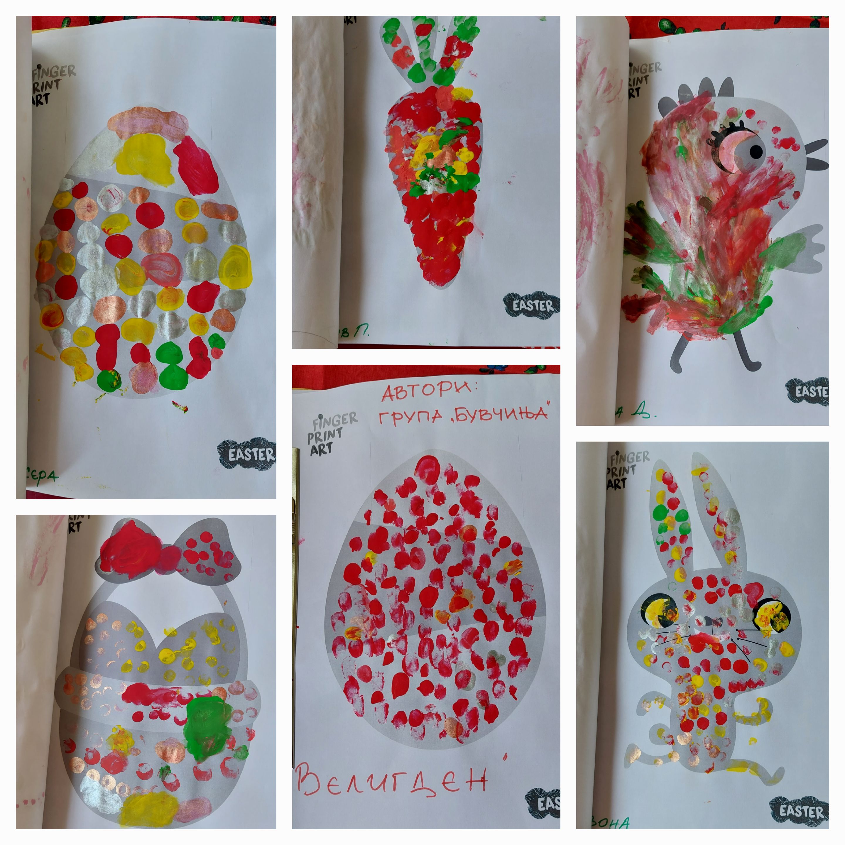 На ден 12.04.2023 г., децата од воспитната група "Бувчиња", 3-4 г. од објект "Кокиче", создадоа своја сликовница, боејќи пролетни и велигденски илустрации со техниката "finger print".