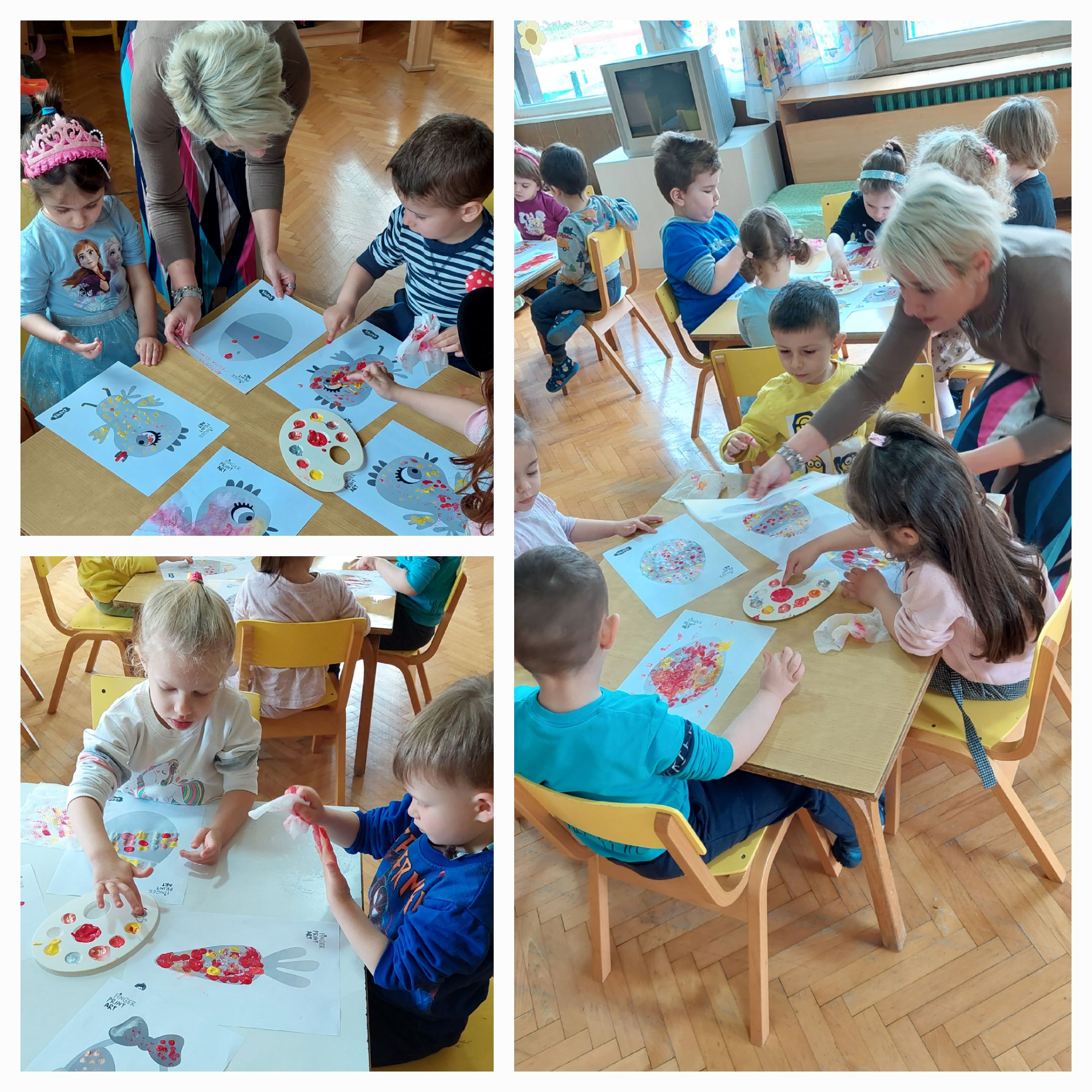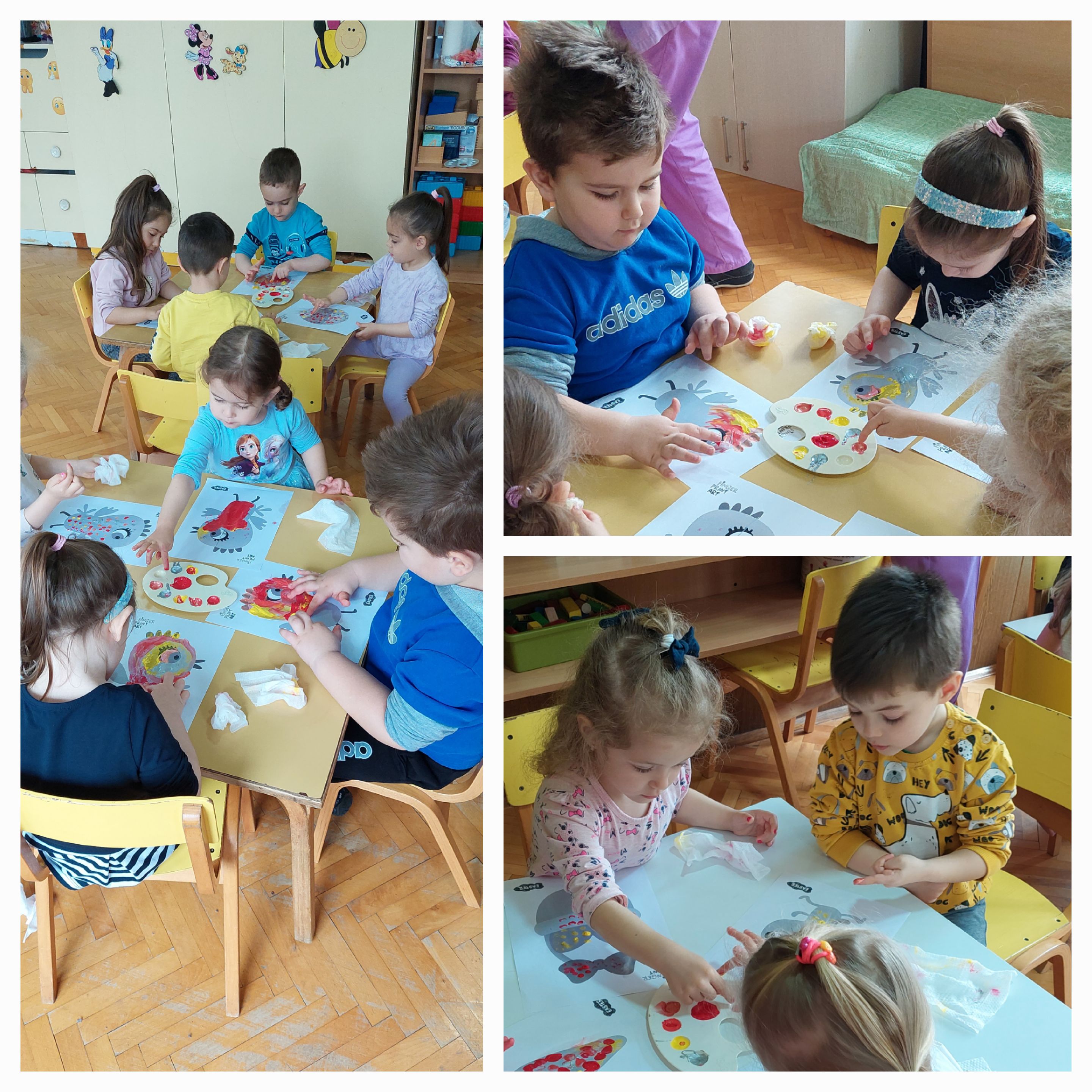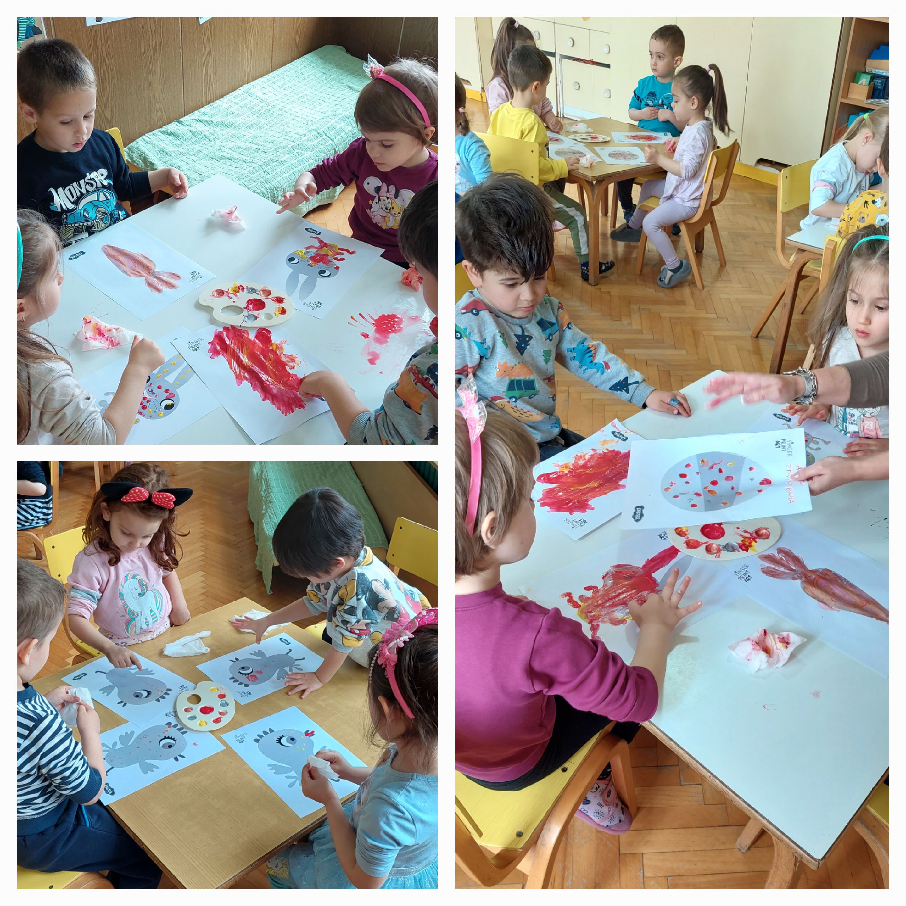 На ден 12.04.2023 г., децата од воспитната група "Бувчиња", 3-4 г. од објект "Кокиче", создадоа своја сликовница, боејќи пролетни и велигденски илустрации со техниката "finger print".