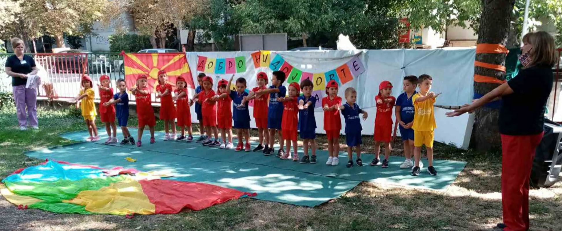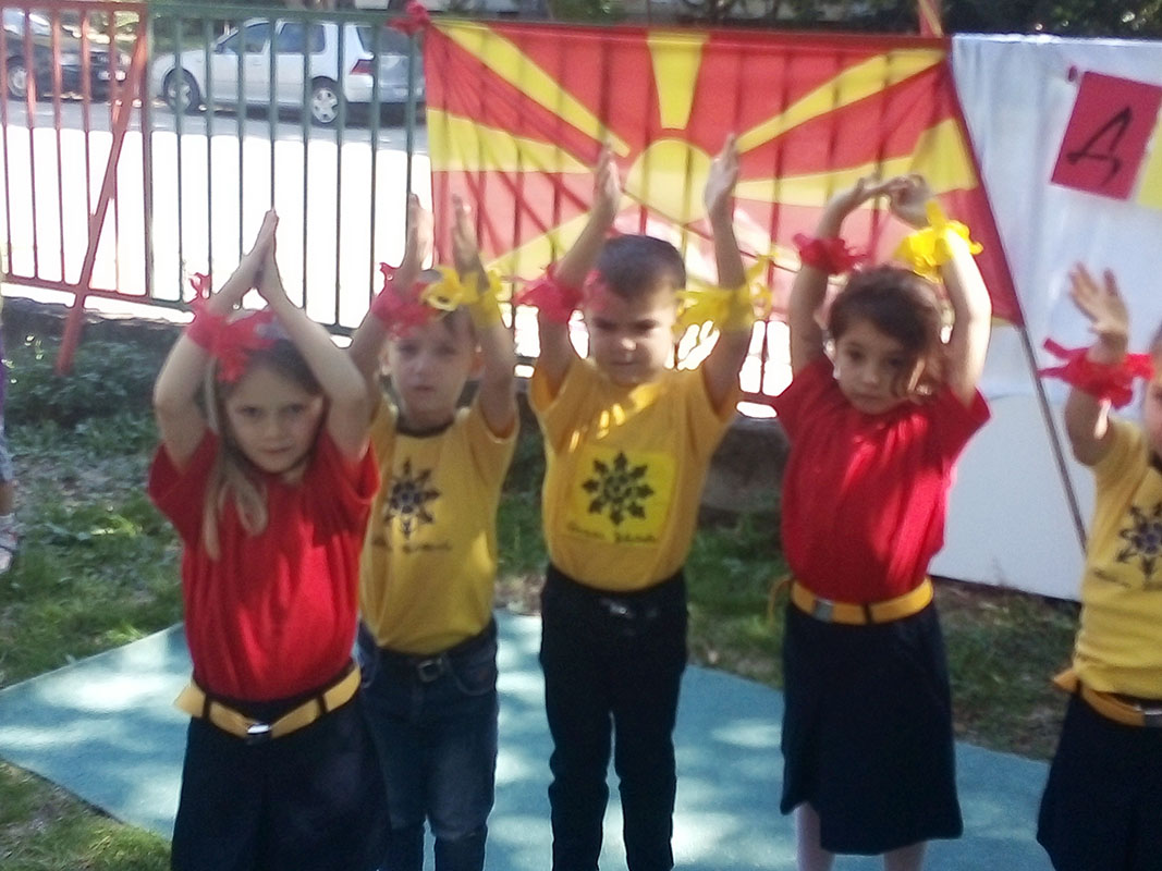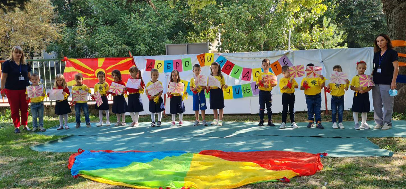 Радосни и насмеани децата од групите од 5-6 годишна возраст од објект „Сончоглед“ го одбележаа Денот на татковината и им посакаа Добредојде на другачињата во градинката со песни и музички игри.