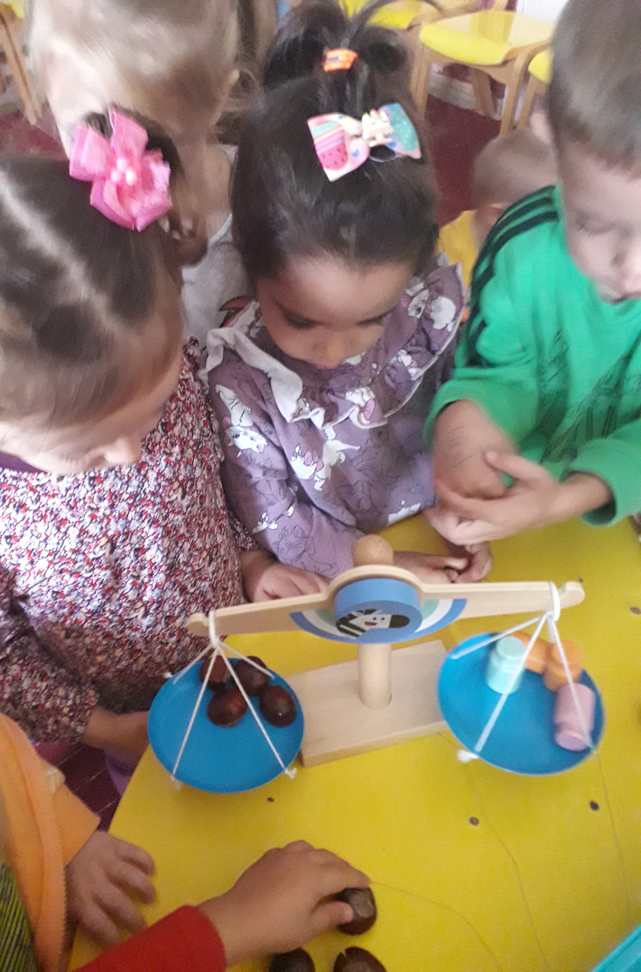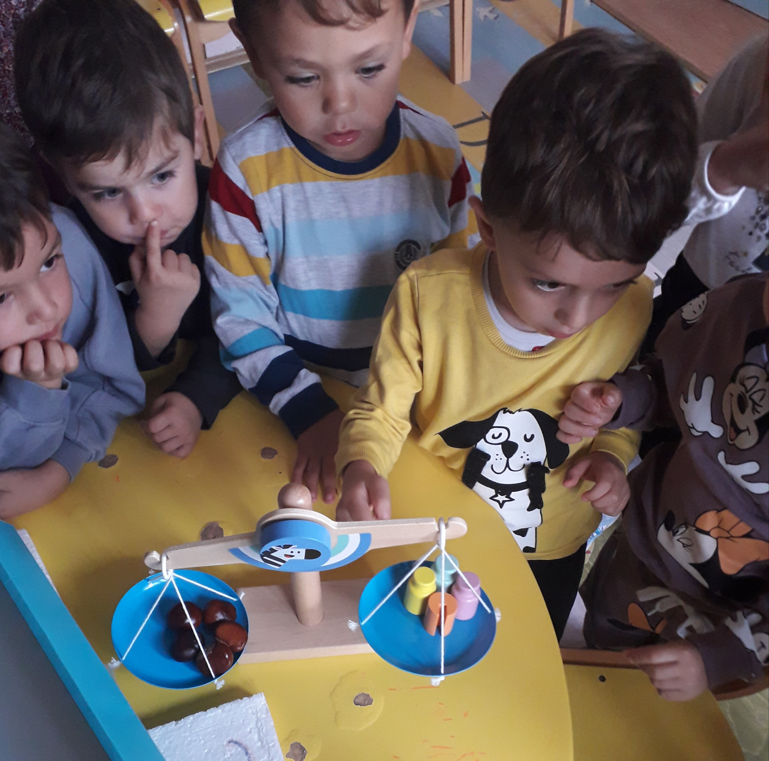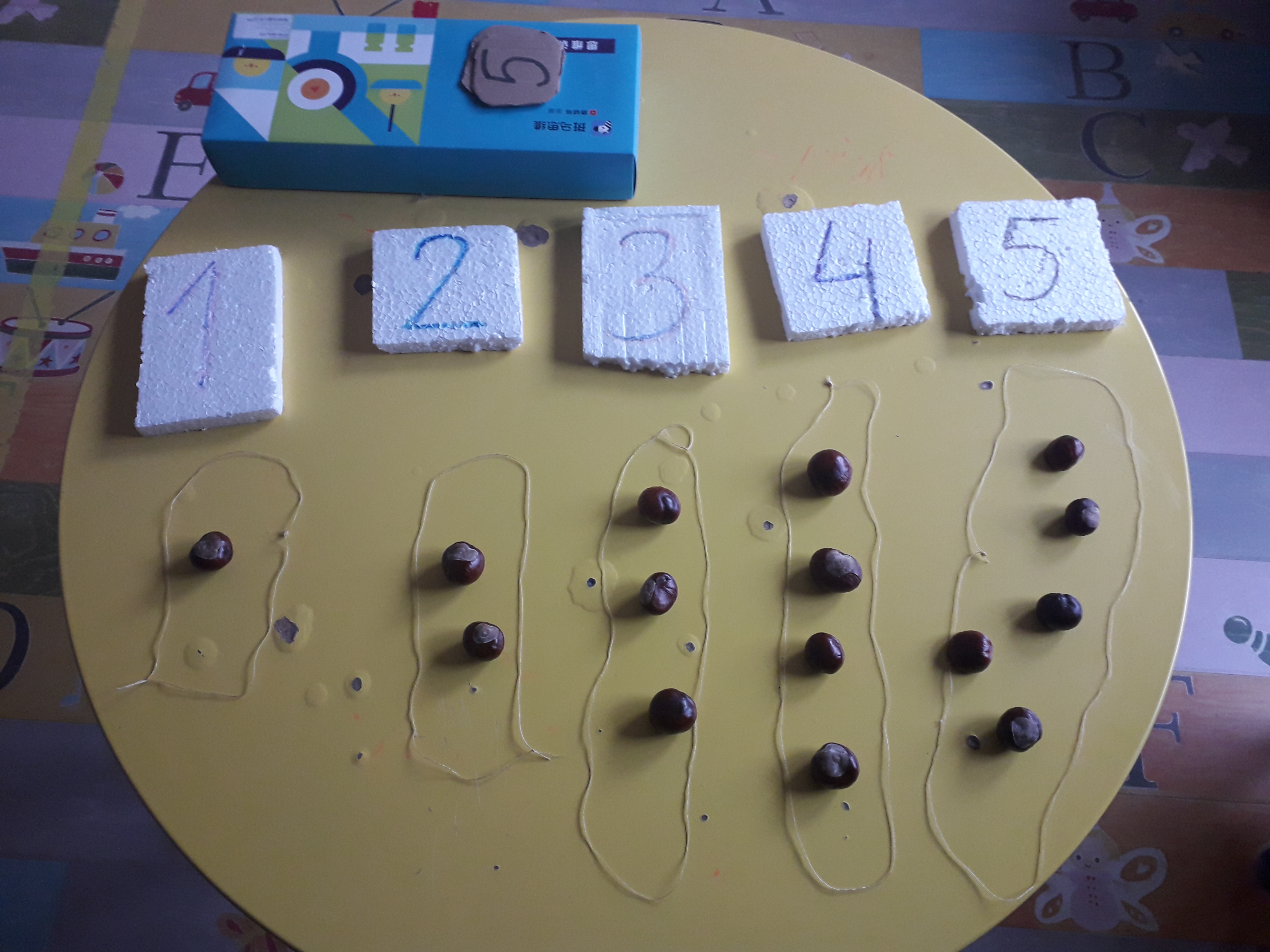 На креативен начин децата да се запознаат со броевите од 1до5, децата да бројат до бројот 5, да ги препознаваат броевите и да се запознаат со поимот количина.